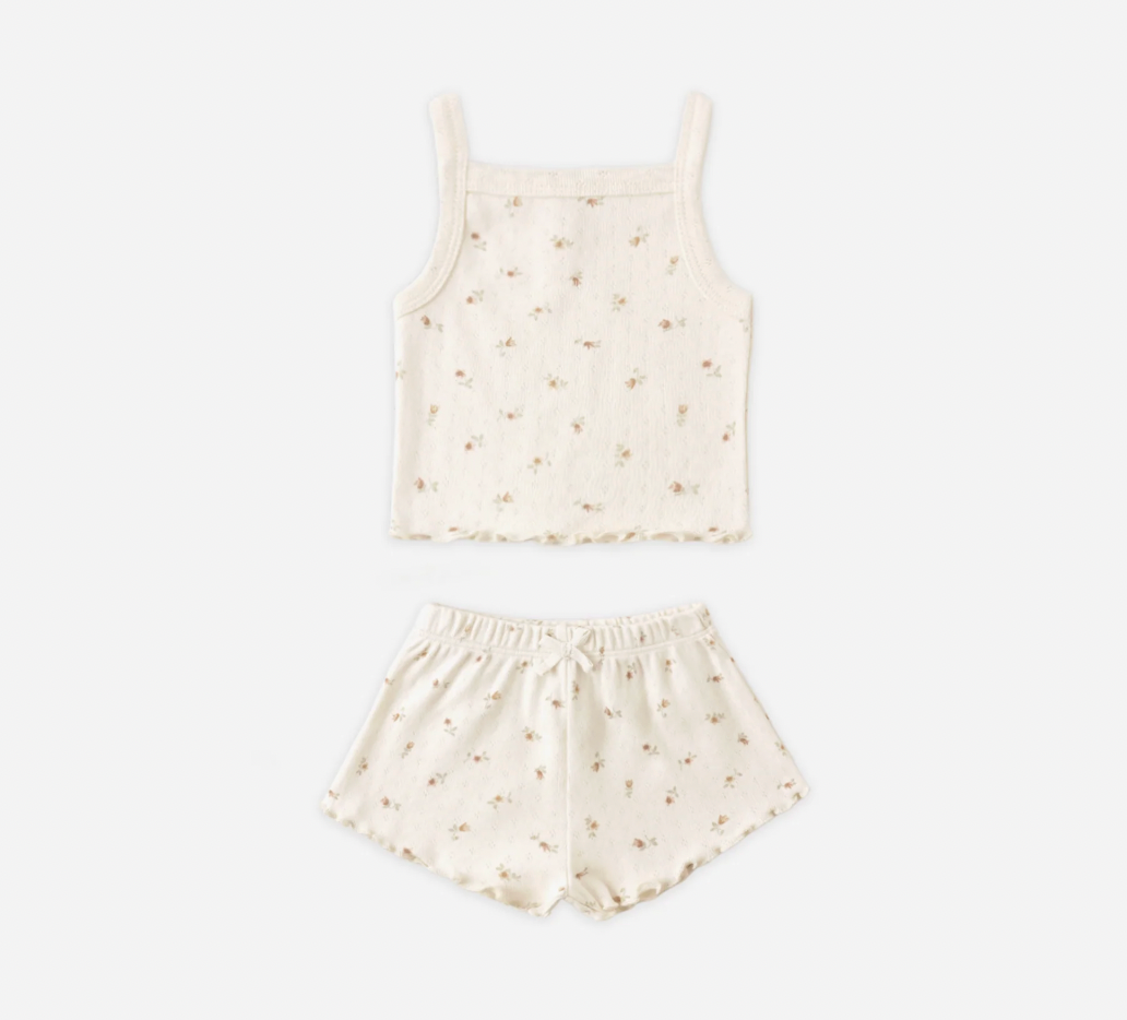 This pointelle set is a sure summer staple! Featuring a square neck tank top and shorts with an elastic waistband and bow detail.