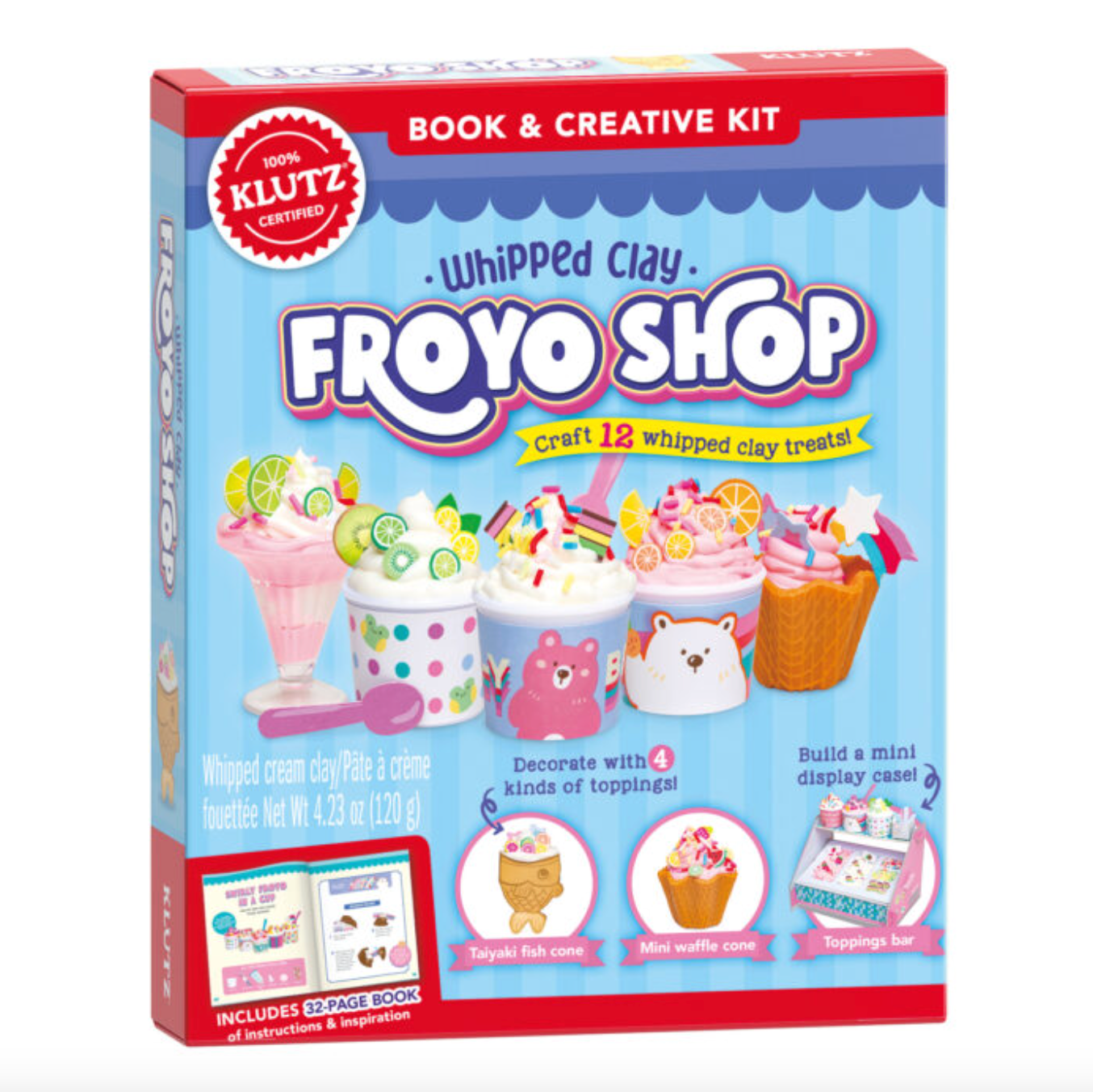 It's a tiny froyo shop in a box! Make tiny too-fake-to-eat treats with air-dry whipped clay and custom toppings in mini cups. Choose from six step-by-step projects such as swirly froyo in a cup, a taiyaki fish cone, or a decadent sundae in a waffle bowl -- or mix-and-match the materials to make up to 12 projects. The whipped clay comes in two colors with two piping tips, so you can pipe the clay just like frosting. Craft supplies mimic candies like sprinkles, popping boba, gummy bears, and fruit slices. Display your finished crafts on the miniature papercraft counter to complete your cool little shop.