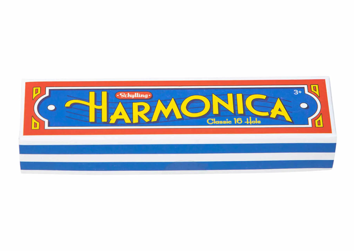 Make sweet music with Schylling’s Harmonica! This 16 hole harmonica features a classic tin design that simply sings nostalgia. Play a familiar tune or create something new!