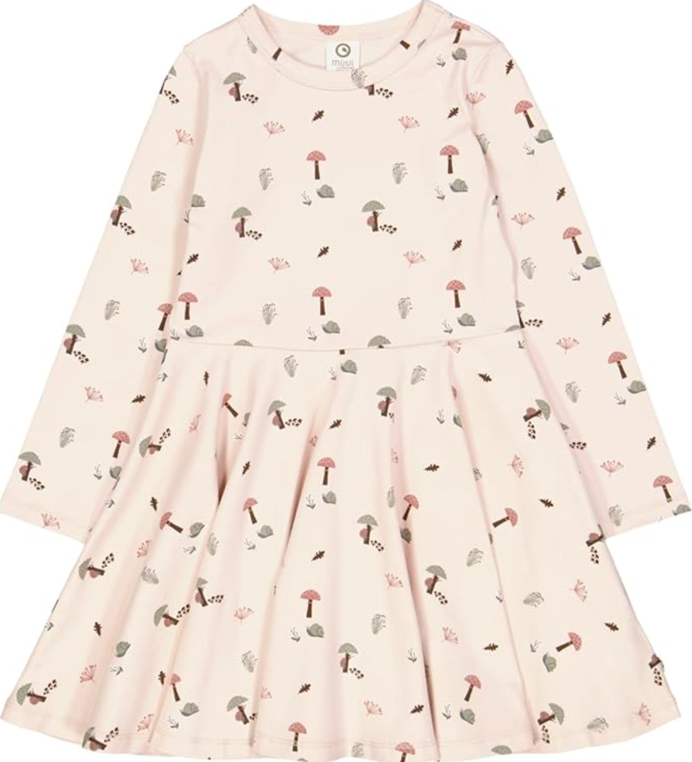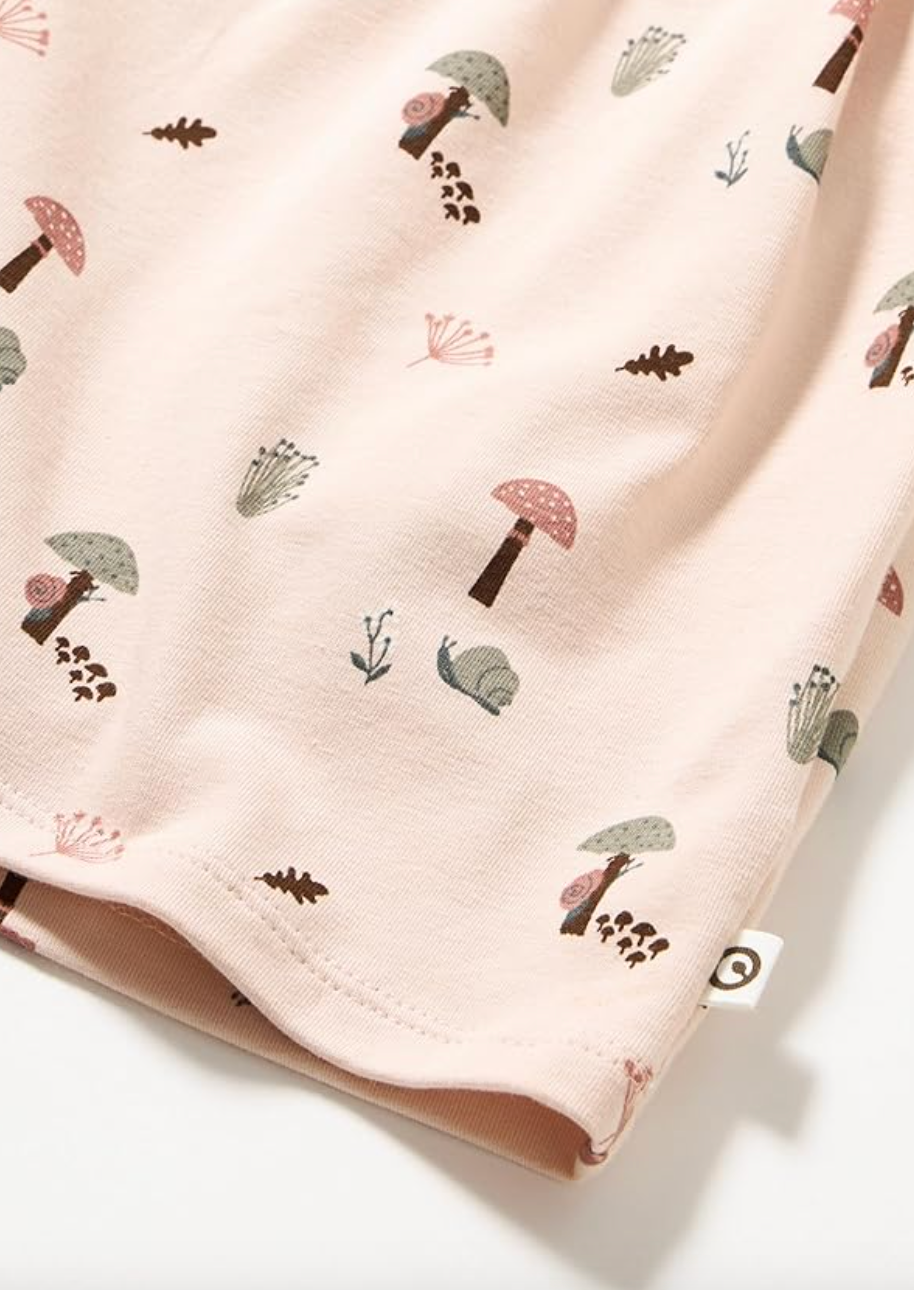 Cute swing dress with lots of width in the skirt. The dress has a beautiful all over print of elements from the Danish forest. Made in soft and stretchy single jersey with elastane to ensure a comfortable fit that holds its shape. GOTS Organic Certified by Ecocert Greenlife Lic. No. 152033 The product is GOTS Organic certified which means, that the cotton is certified organic. Also the strictest concern for the environment has been taken in all the other processes, like dying, knitting and sewing. GOTS also takes into consideration the work conditions for the workers. Organic cotton 95%, elastane 5%
