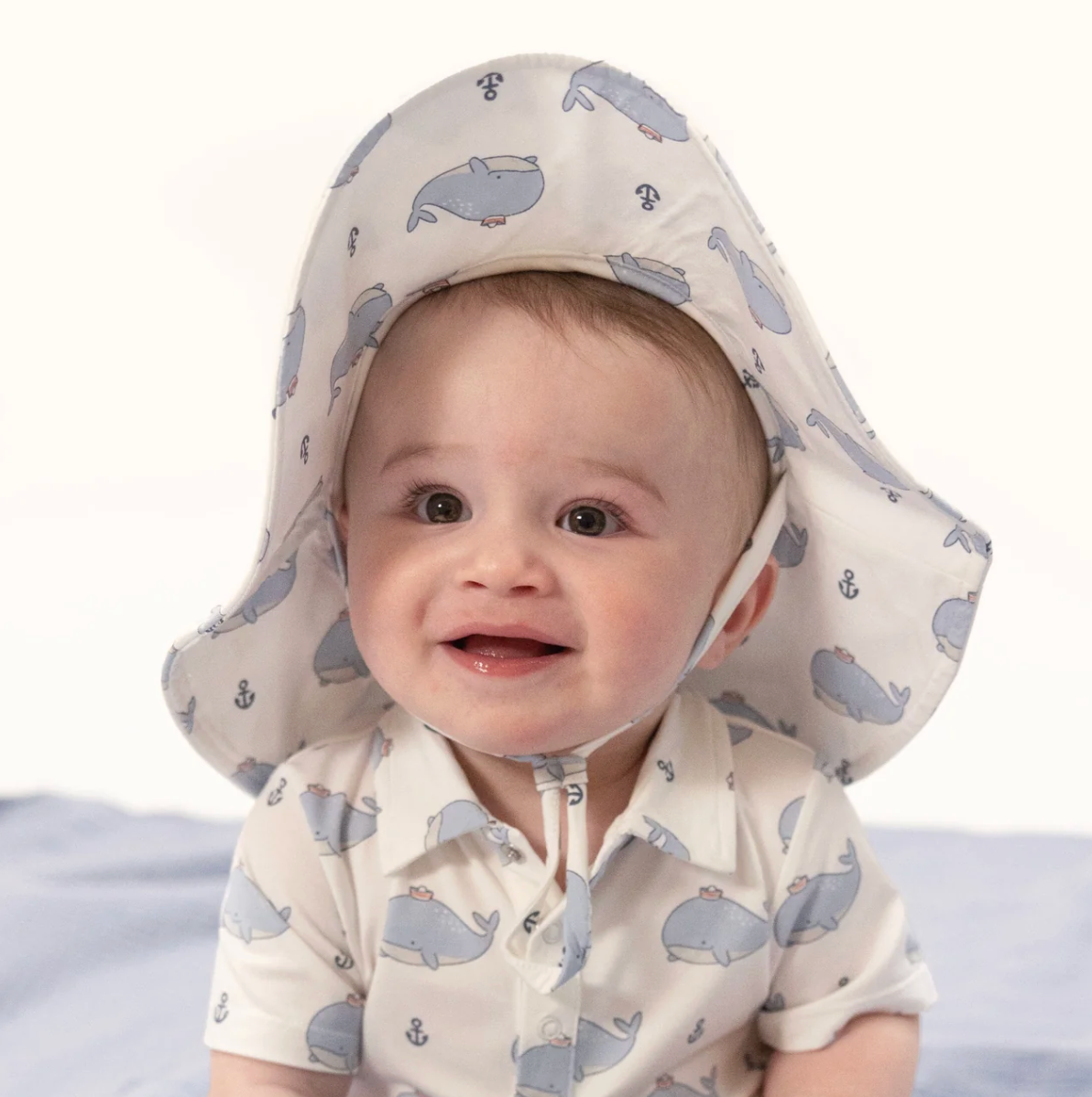 Angel Dear Wide Brim Sun Hat Bubbly Sailor Whales Blue