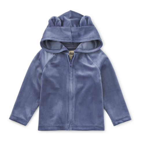 Tea Collection Bear Ears Velour Baby Hoodie Naval Blue