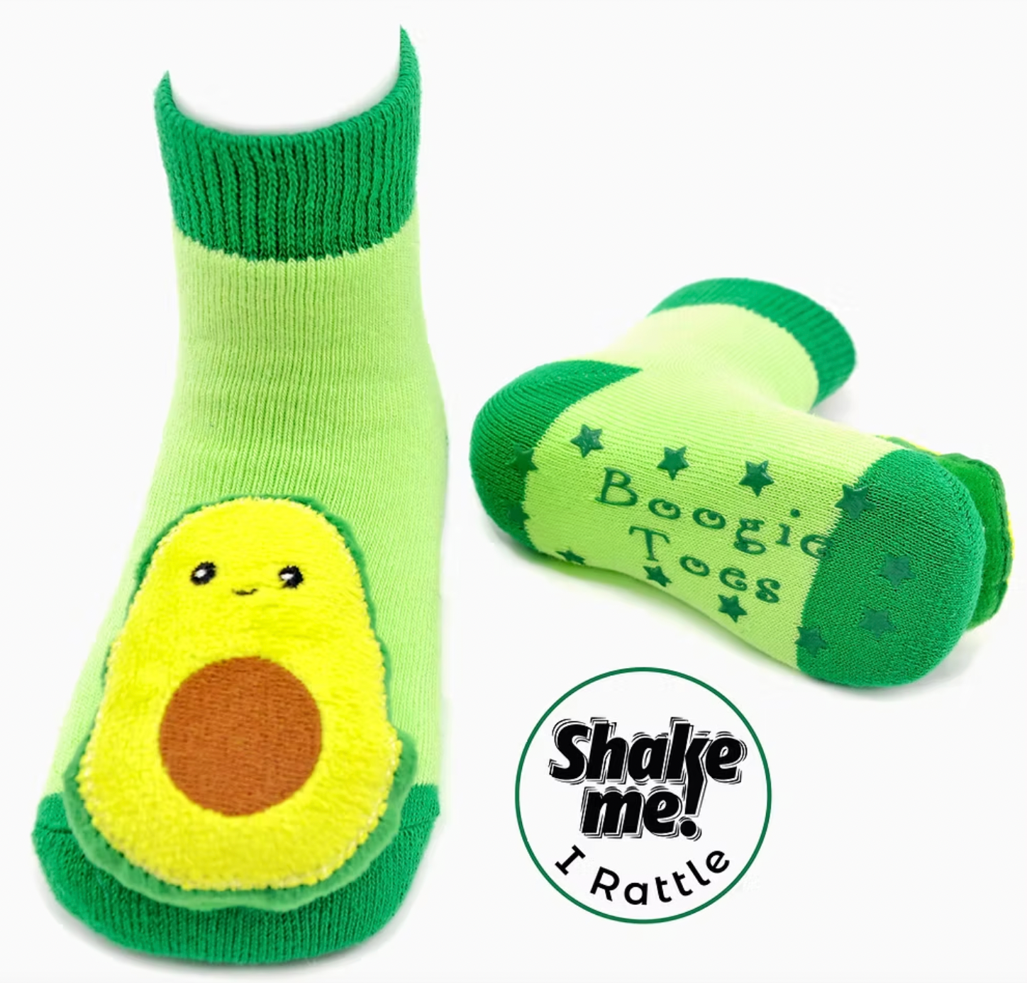 Boogie Toes Little Avocado Non-Slip Rattle Socks