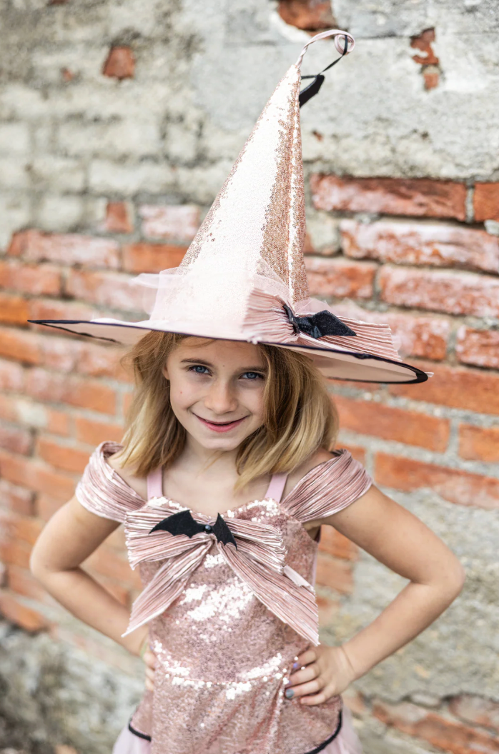 Get ready to cast a spell of glamour with our stunning Glam Witch Hat! This enchanting accessory is perfect for adding a touch of elegance to your witchy ensemble. Crafted with rose gold sparkly fabric, this hat exudes elegance and glamour. The bat embellishments add a whimsical touch, making it a standout piece. Whether you're attending a Halloween party or simply want to embrace your inner witch, our Glam Witch Hat is the must-have accessory for any magical occasion. So grab your broomstick and get ready to bewitch everyone with your impeccable style!