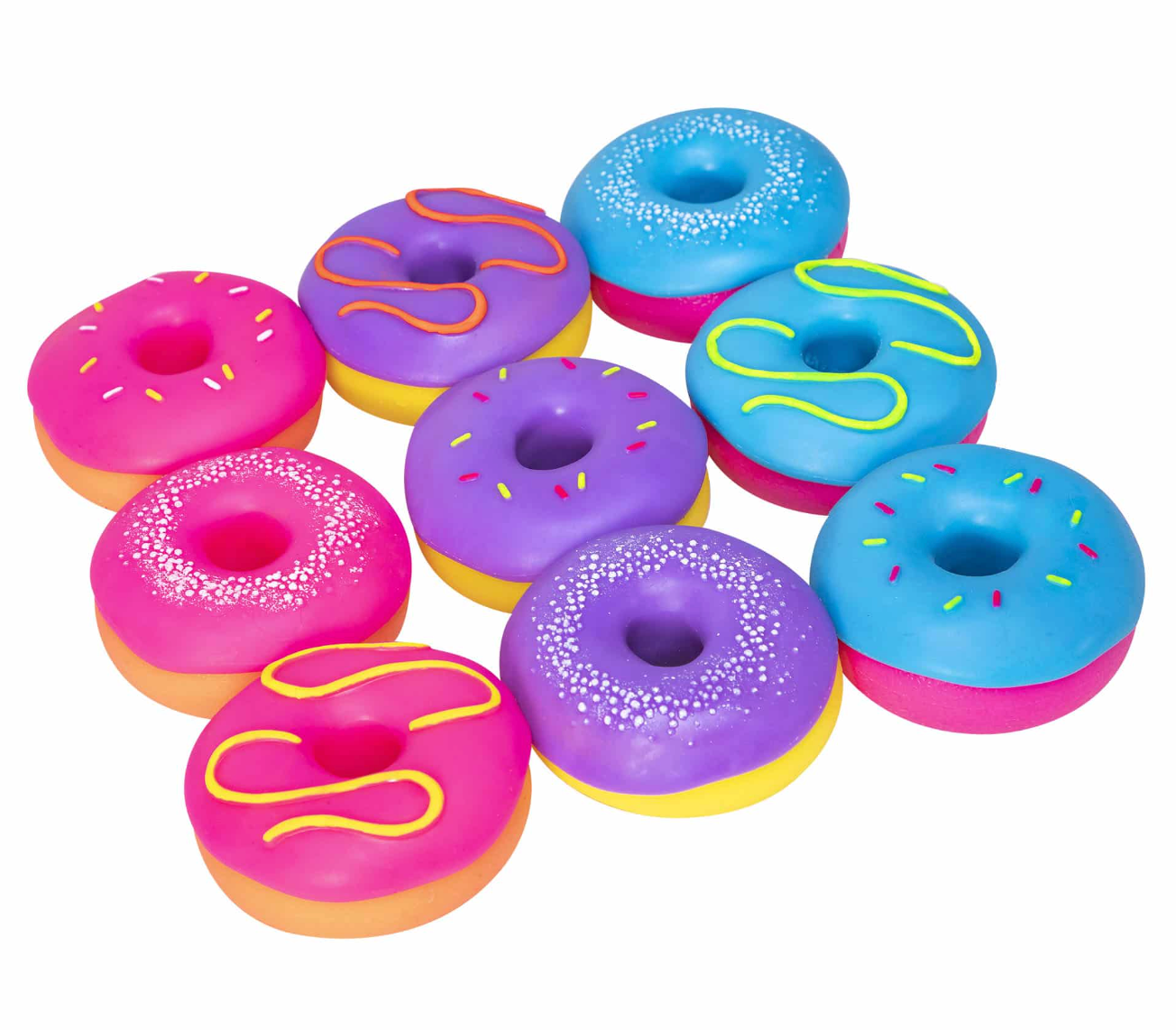 - Available in 3 assorted donut colors and 9 different frosting styles